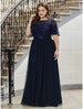 A-Line Empire Elegant Party Wear Prom Dress Jewel Neck Short Sleeve Floor Length Tulle with Embroidery