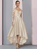 A-Line Mother of the Bride Dress Wedding Guest Elegant High Low Scoop Neck Asymmetrical Tea Length Satin Lace Long Sleeve with Pleats Beading Appliques