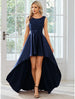 A-Line Wedding Guest Dresses Casual Dress Party Wear Asymmetrical Sleeveless Jewel Neck Satin with Pure Color