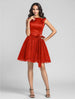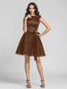 Ball Gown / A-Line Bridesmaid Dress Bateau Neck Sleeveless Little Black Dress Tea Length Lace / Charmeuse with Lace / Draping