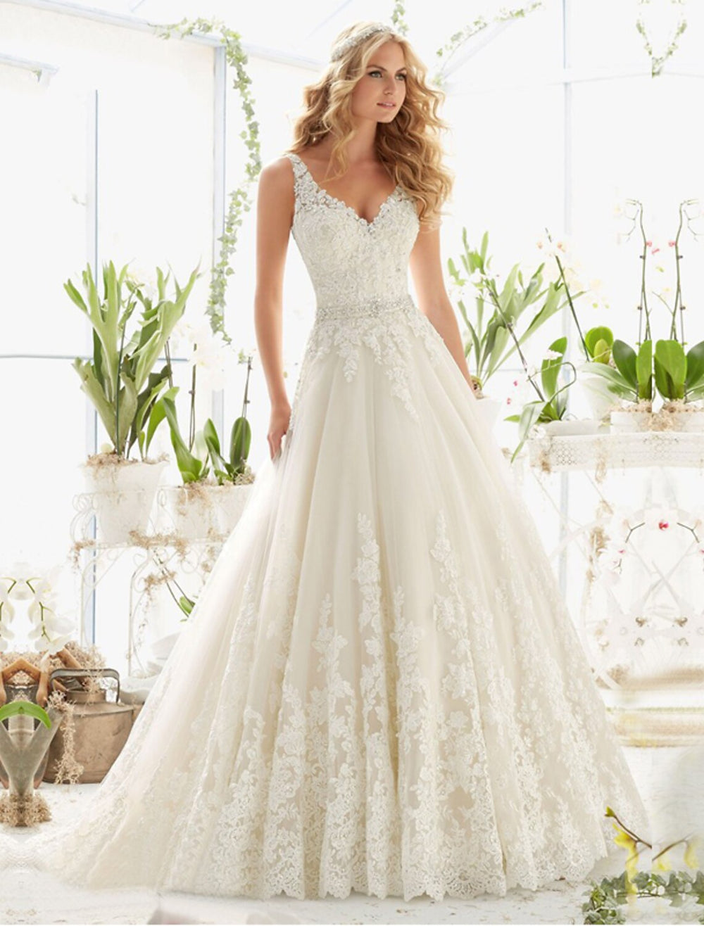 Engagement Open Back Sexy Formal Wedding Dresses A-Line V Neck Sleeveless Court Train Lace Bridal Gowns With Summer Wedding Party, Women's Clothing