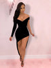 Hot Sexy Holiday Party Wear Club Dress High Slit V Neck off Shoulder Long Sleeve Bodycon Asymmetrical Spandex with Sleek