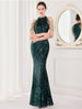 Mermaid Party Dress Prom Dresses Sparkle & Shine Dress Formal Wedding Guest Floor Length Sleeveless Halter Neck Sequined with Sequin