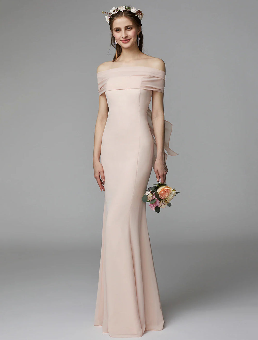 Mermaid / Trumpet Bridesmaid Dress Strapless Sleeveless Backless Floor Length Chiffon with Sash / Ribbon / Pleats