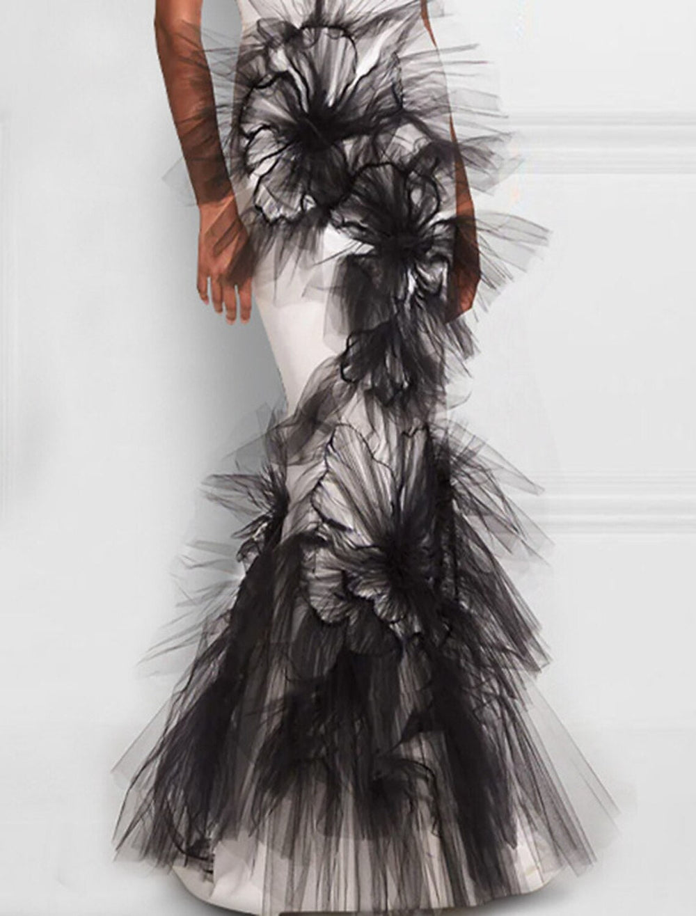 Mermaid / Trumpet Evening Gown Color Block Dress Formal Floor Length Sleeveless V Neck Fabric with Appliques