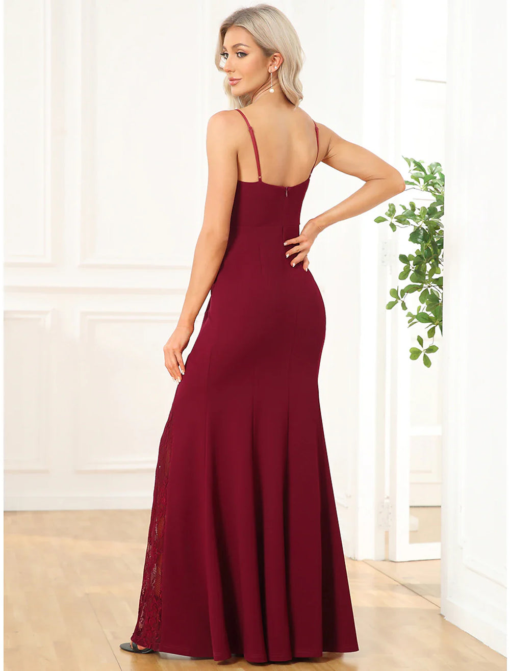 Mermaid / Trumpet Evening Gown Cut Out Dress Wedding Party Floor Length Sleeveless V Neck Polyester with Slit Embroidery