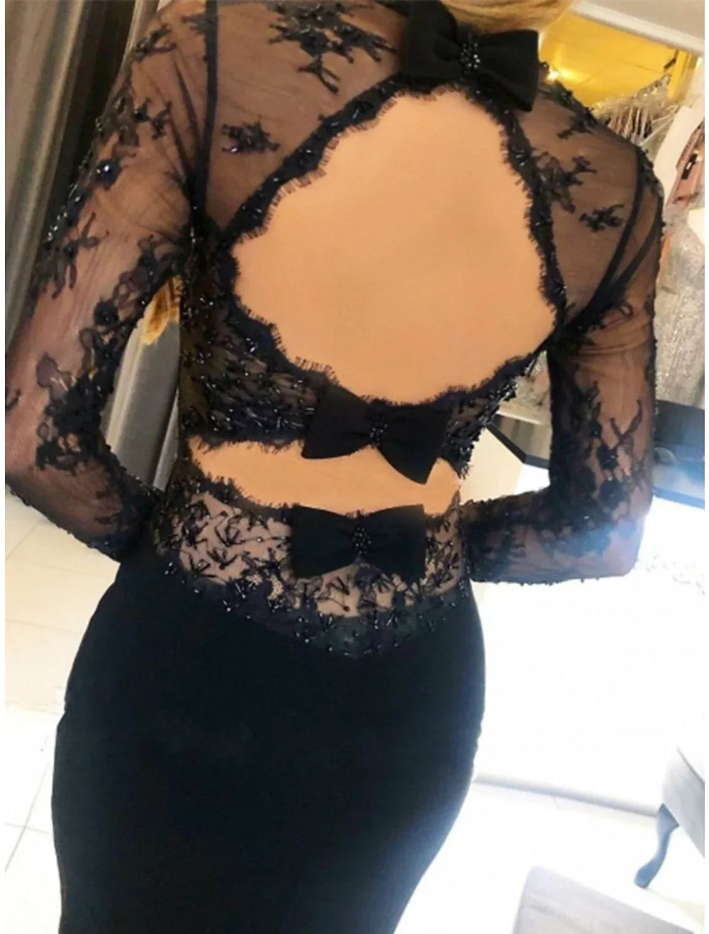 Mermaid / Trumpet Prom Dresses Open Back Dress Formal Court Train Long Sleeve Strapless Fabric Backless with Beading Appliques