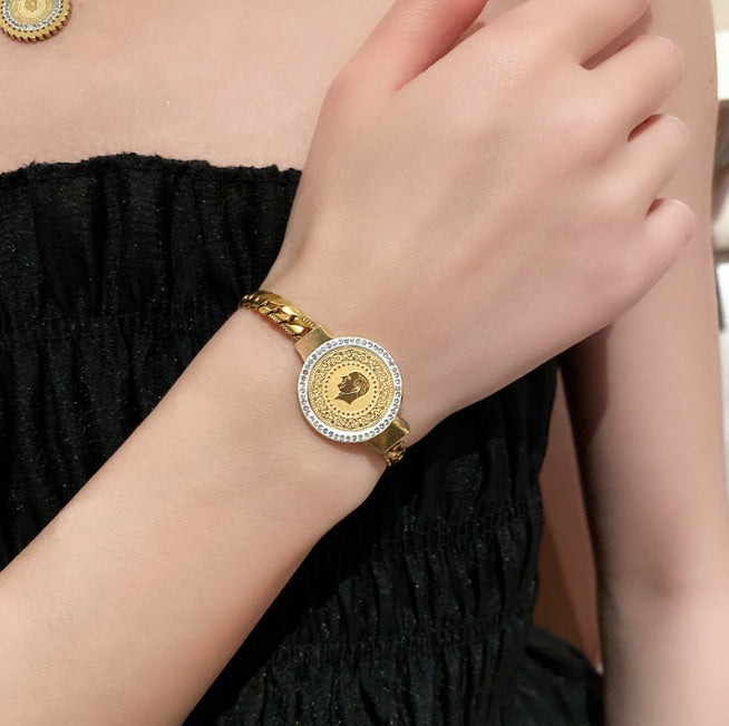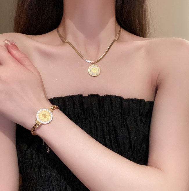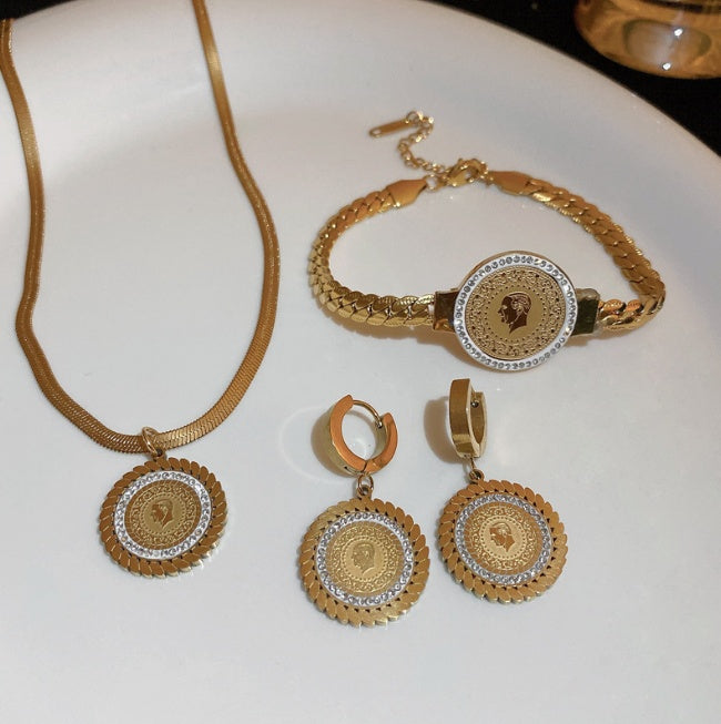 Color: Bracelet-gold, ear clip-gold, necklace-Gold